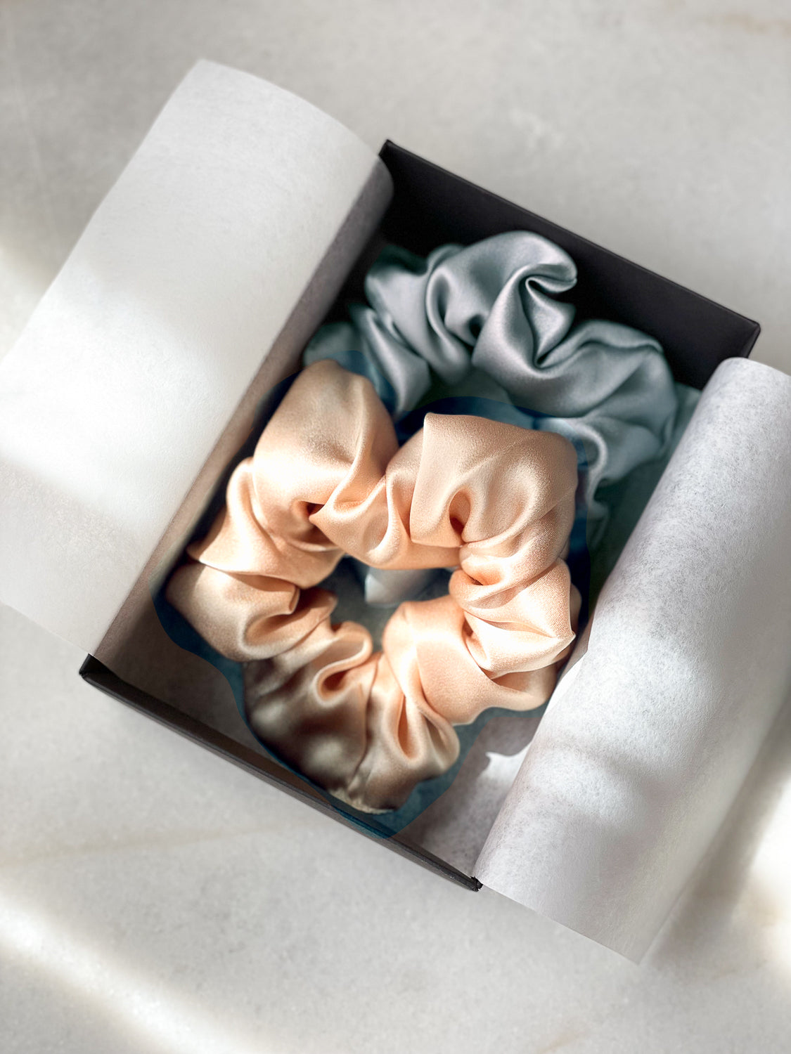 Natural silk scrunchies for your hair! Highest quality 25 momme mulberry silk....
