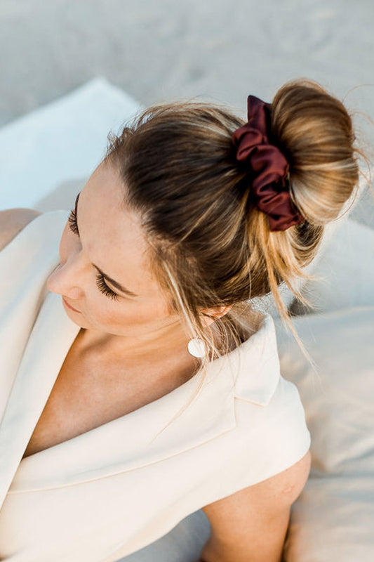 Set of 2 L size natural silk scrunchies - cappuccino beige & chocolate brown