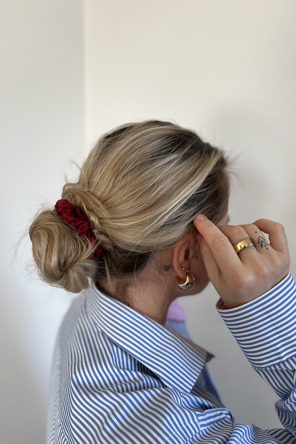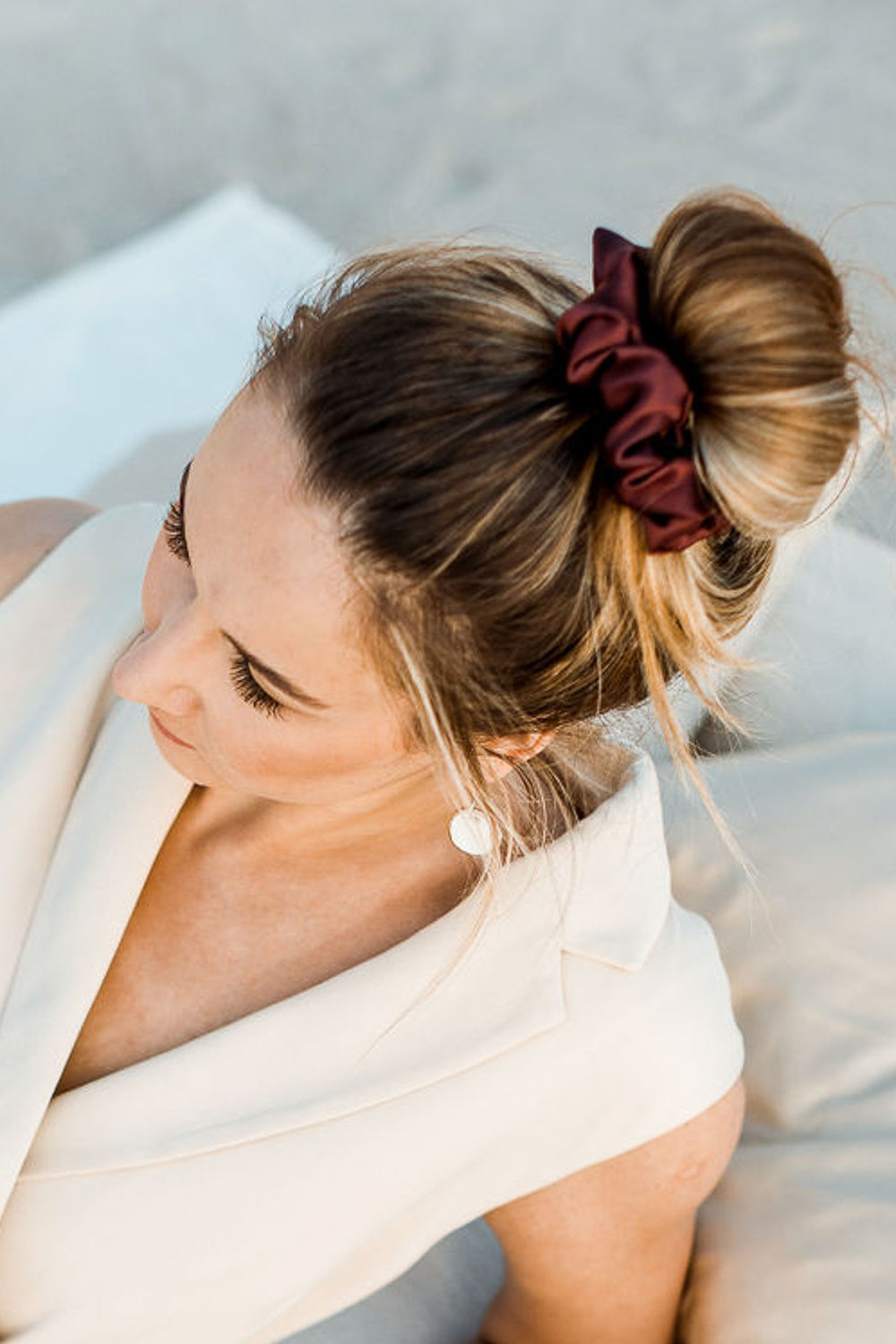 Use natural silk scrunchies and headbands only in clean, dry hair. Do not use together with dry shampoo or other strong hair products, it may ruin the fabric.