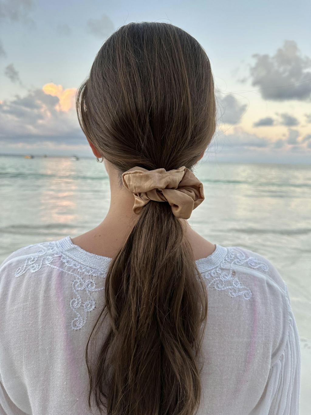 Silk scrunchie helps hair grow healthier. No more breakage, bents and creases.