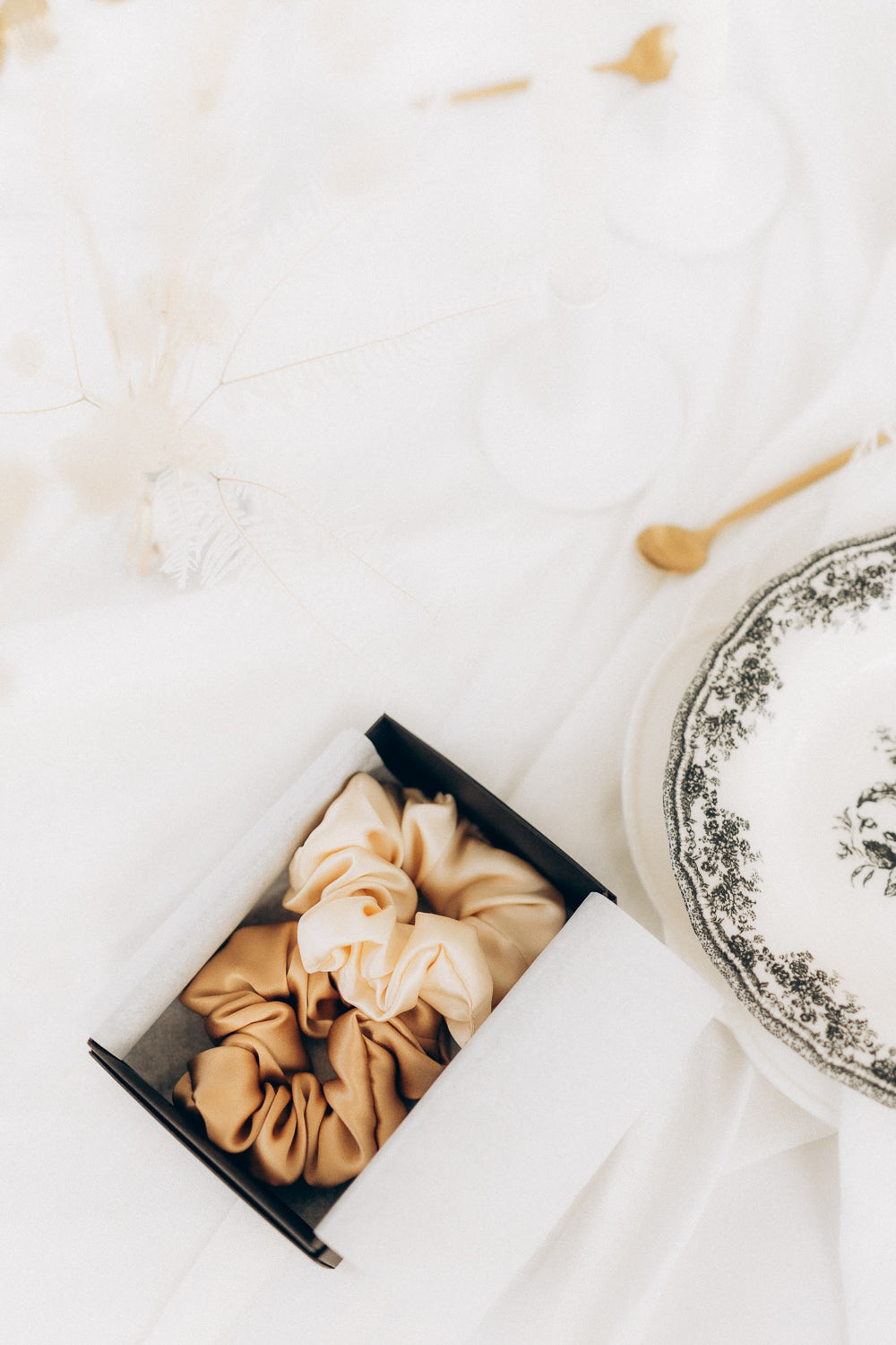 In this set you will get two L size natural silk scrunchies in a nice gift box!