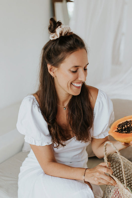 Dabīgā zīda matu gumija Cappuccino Beige