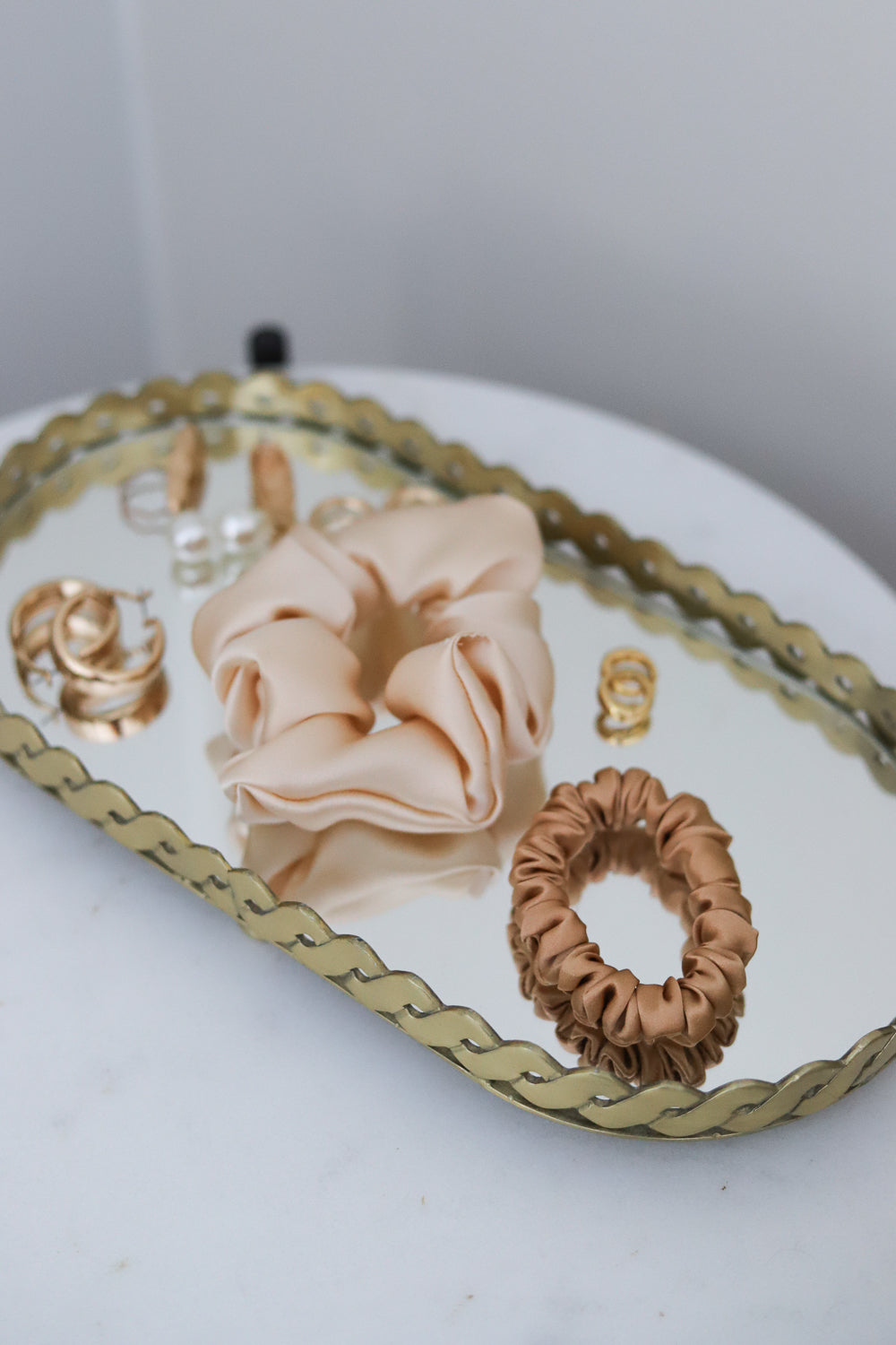 Zīda matu gumiju komplekts bēšā un zelta krāsā I Katrina Silks